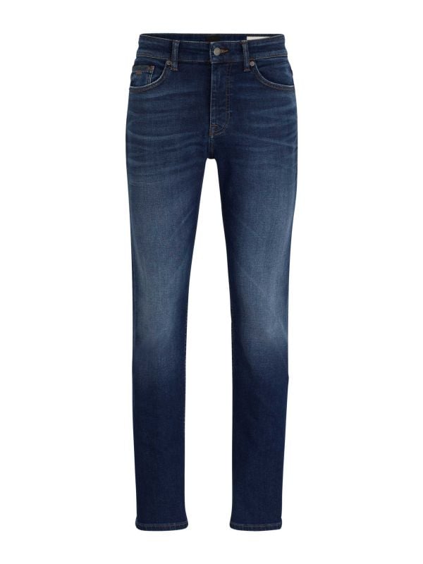 Delicate fading and whiskering add character and depth, elevating the jeans to a level of understated sophistication. Embellished with a branded leather waistband tab, they speak to the brand's commitment to quality craftsmanship. With a regular rise and slim fit, the Hugo Boss Delaware BC-C jeans strike the perfect balance between contemporary aesthetics and everyday wearability, making them a versatile staple for the modern wardrobe.