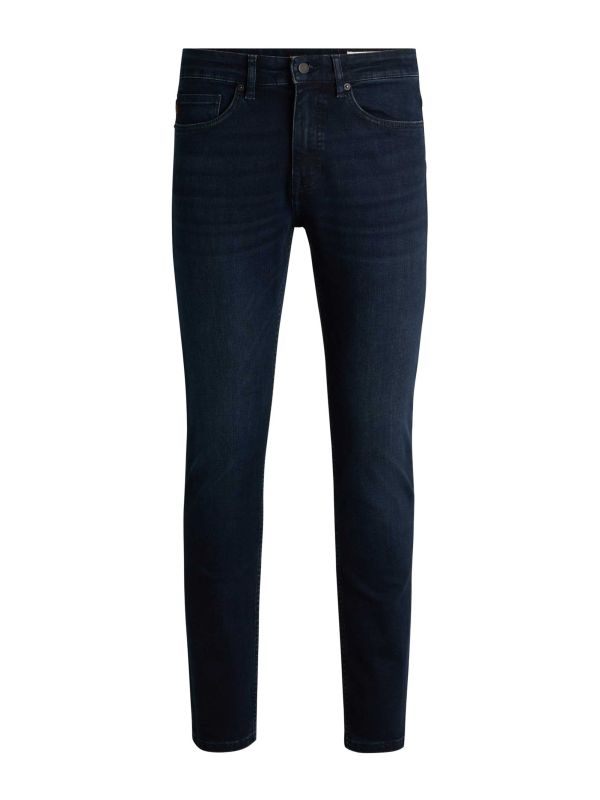 The blue-black denim wash adds a sophisticated touch, while the branded waistband tab and metal hardware provide distinctive details. Designed with a slim fit and regular rise, the BOSS Delaware BO jeans offer a modern silhouette that is perfect for any casual or semi-formal occasion.