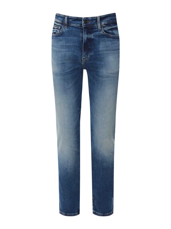 The fading and whiskering add a lived-in look, while the slim fit and regular rise create a modern silhouette. Available in regular or long leg lengths, the Hugo Boss jeans are perfect for a polished yet casual look.