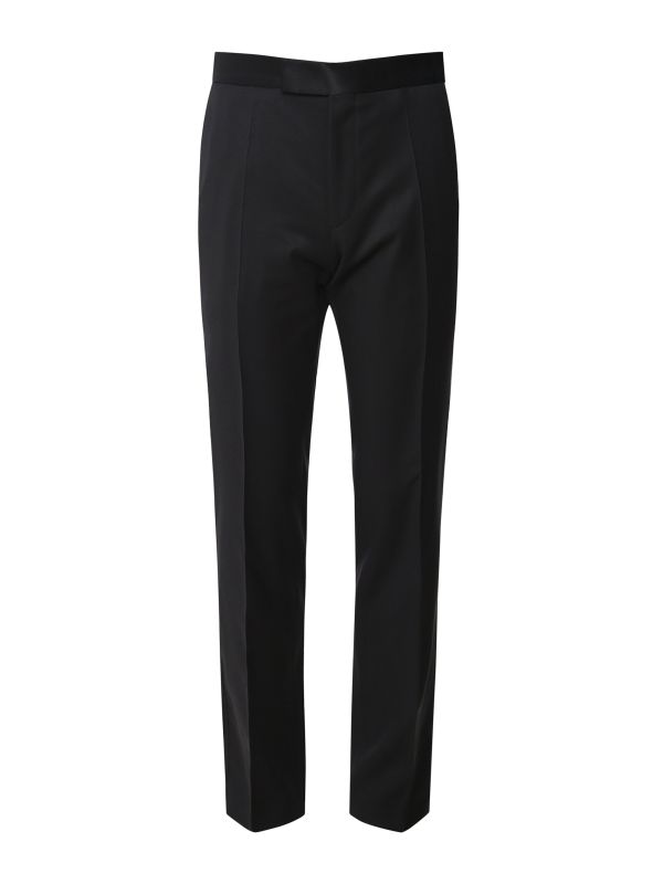 Lend timeless sophistication to your evening attire with the BOSS H-Genius tuxedo pants. Elegantly tailored to a slim fit, the pants are crafted in a serge-woven virgin wool for softness and exceptional drape. Featuring a hook and zip fastening, four pocket design and central leg crease, with the silk blend waistband and trims providing luxurious detail.