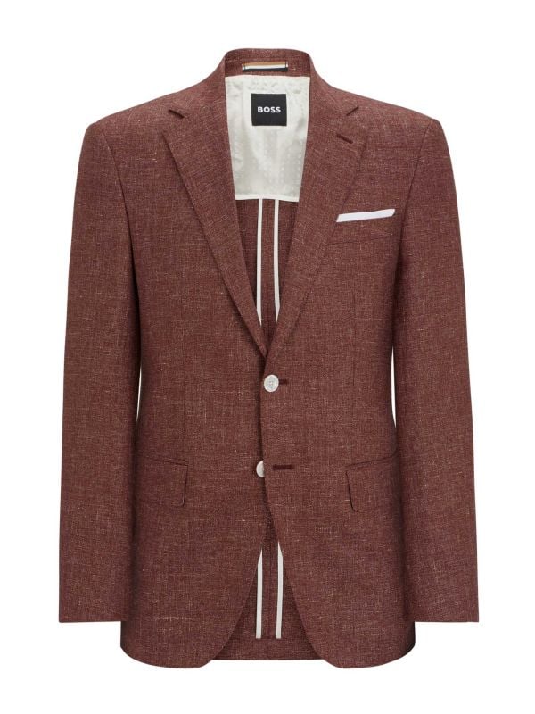 The BOSS H-Hutson-233 blazer exudes refined elegance with its impeccable craftsmanship and sophisticated design. Crafted from a luxurious blend of virgin wool and linen, it boasts a unique texture that exudes quality and style. Its single-breasted silhouette features classic notch lapels and a sleek two-button closure, adding a timeless appeal to any ensemble.