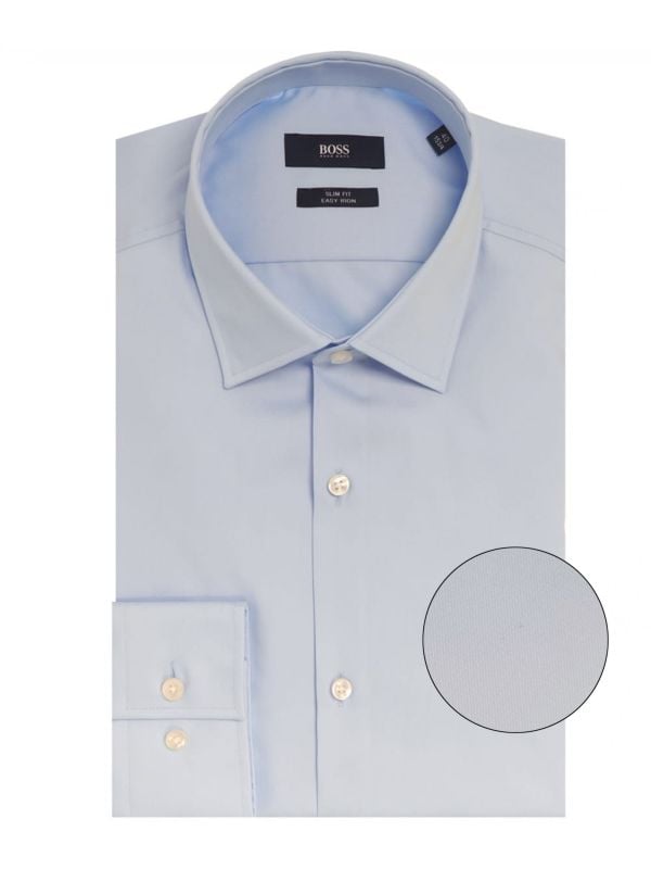 Update your on-duty wardrobe with the Hugo Boss Jenno shirt. The shirt has been tailored in a slim fit for a contemporary appeal and as been crafted from an easy iron cotton, ensuring it's the perfect go to when you're looking to remain stylish on a busy day. The shirt features a pointed collar, single cuffs and pearlescent buttons. Team this Hugo Boss shirt with tailored pants and Derby shoes for a flawless, professional finish.
