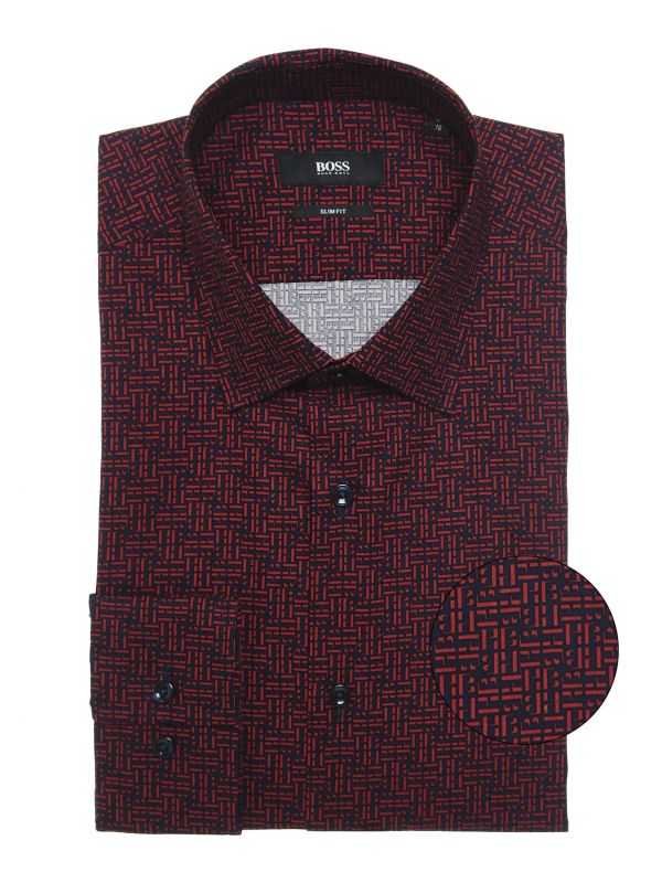 Delivering a contemporary twist to tailoring, the BOSS Jango shirt is a super versatile smart-casual option. Cut to a slim fit and crafted in premium woven cotton, the shirt offers a clean-cut silhouette and satin-like finish. Featuring a Kent collar, French placket and adjustable buttoned cuffs, whilst the bold 'HB' monogram print creates statement-making character.