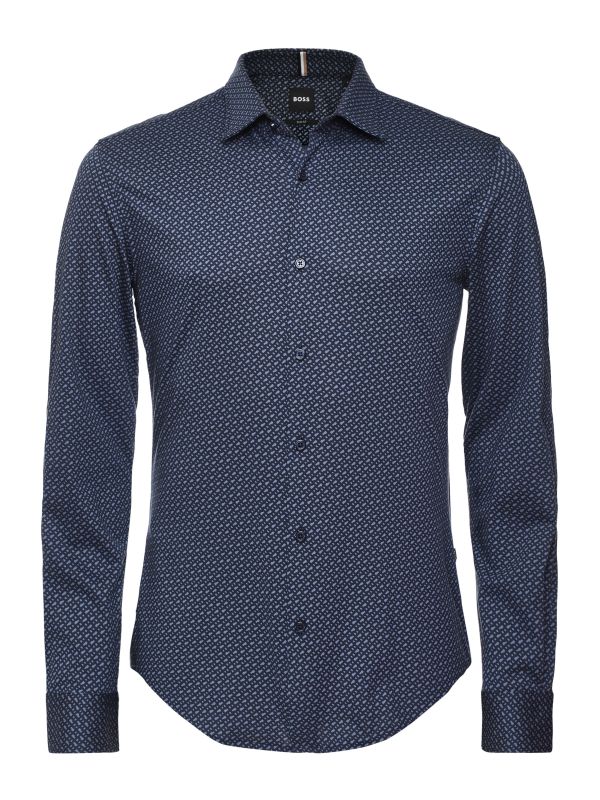 The BOSS Roan_F shirt is a smart choice for those evenings out. Tailored in a cotton rich blend, the shirt offers a silk-like handle and flattering slim silhouette. Featuring a Kent collar, neat French placket and adjustable button cuffs, whilst the monogram repeat pattern lends signature BOSS style.