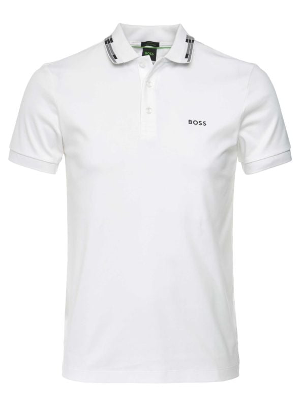 The BOSS Paule polo shirt exudes sophistication with its sleek design and attention to detail. Crafted in a slim fit silhouette, it offers a modern and tailored appearance. Made from high-quality cotton interlock, it ensures both comfort and durability.