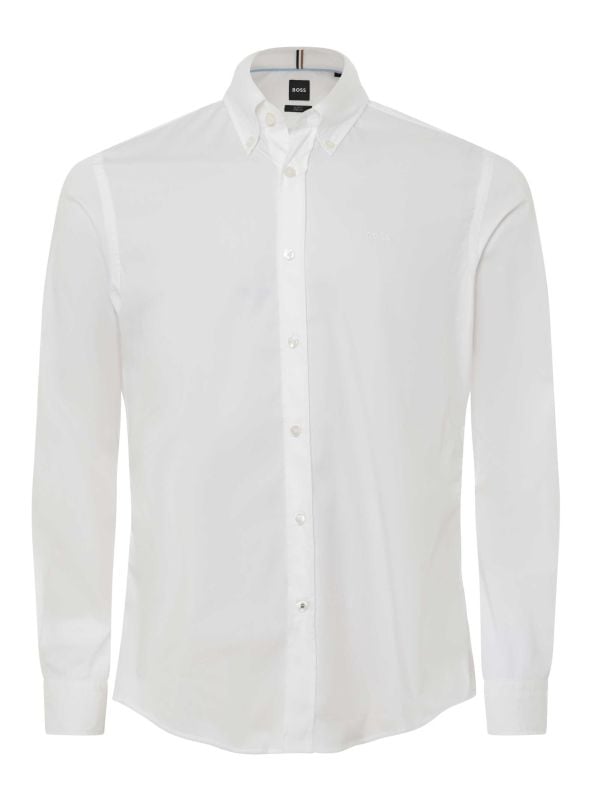 The BOSS H-ROAN shirt is a versatile staple with a refined casual edge. Crafted from a cotton blend stretch poplin, it offers a lightweight feel with added flexibility for all-day comfort. The button-down collar gives it a relaxed yet polished look, making it easy to dress up or down.