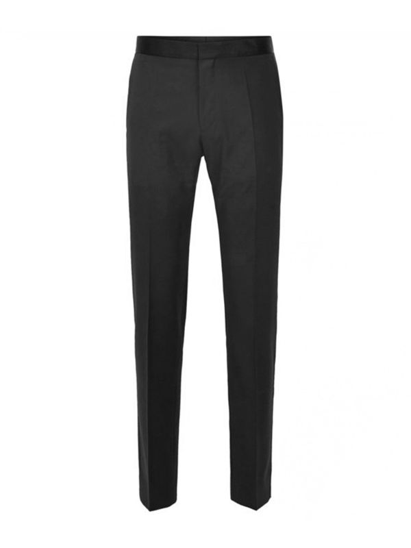 Elevate your evening wear with the BOSS Gilan_cyl pants. Expertly tailored in premium yarn-dyed virgin wool and cut to a narrow slim fit, the black pants offer a contemporary silhouette and super soft handle. Featuring a French bearer fastening and four pocket design, whilst the silk trim side stripes and waistband make for an elegantly refined aesthetic.