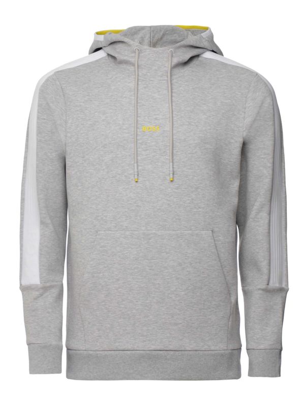 Upgrade your leisurewear with the BOSS Soody 1 hoodie. Crafted in a luxe cotton blend with stretch, this laid-back sweatshirt promises all-day comfort. It features a drawstring hood, kangaroo pocket and ribbed trims, whilst contrasting taped trims and a logo detail add a signature finish.