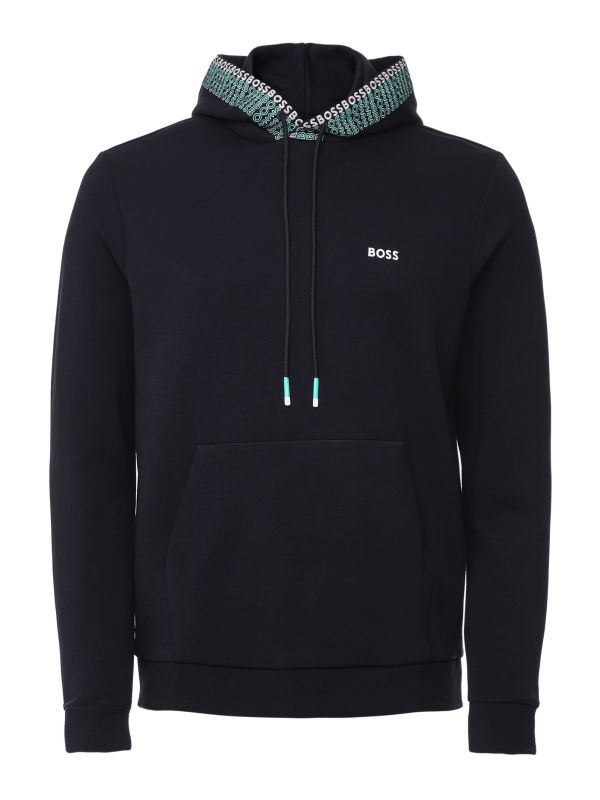 The BOSS Soody 1 hoodie is set to lend a luxe upgrade to your leisurewear. Engineered in a soft cotton blend with stretch, the sweatshirt will ensure superb day long comfort. Featuring a drawstring hood, kangaroo pocket and ribbed trims, whilst the printed BOSS artwork at the edge of the hood adds a modern finish.