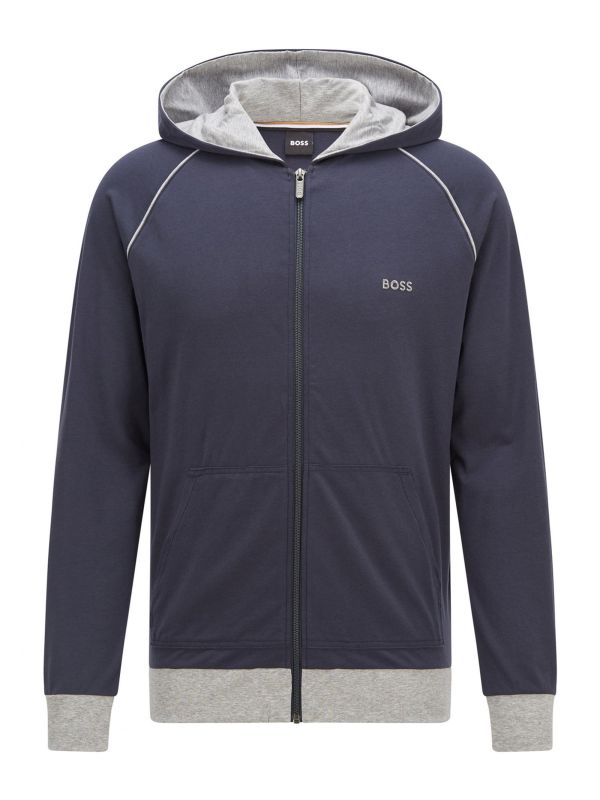 Indulge in quality when at home with the BOSS lounge hoodie. Engineered in a cotton jersey fabric with stretch, the sweatshirt will ensure heightened comfort levels. Featuring a fixed hood with zip through fastening, raglan sleeves and side entry pockets, whilst the contrast trims and piping add sporty detail.