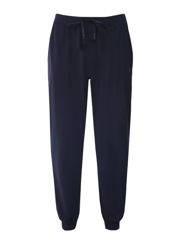 Whether working from home or relaxing at the weekend, the BOSS lounge pants are a super comfortable option around the house. Engineered in a stretch cotton jersey, the pants promise exceptional comfort levels and a super soft handle. Featuring an elasticated drawstring waistband, ribbed ankle cuffs and side pockets with contrast lining, whilst the label's famous logo is embroidered to the leg for an authentic finish.