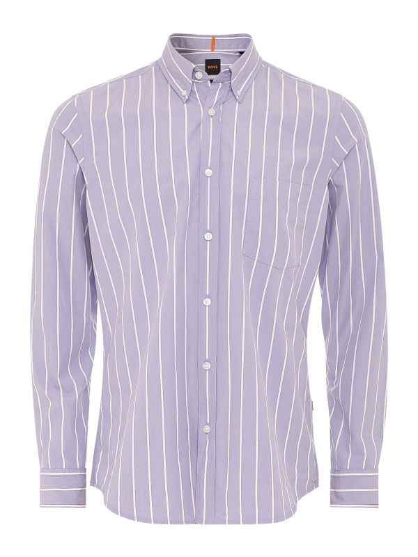 Refresh your summer casuals with the BOSS Rickert shirt. Tailored to a regular fit in premium cotton, the shirt promises superb comfort and a flawless silhouette. Featuring a smart button down collar, patch pocket and buttoned cuffs, with the pinstripe pattern making for a charming aesthetic.