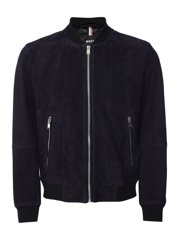 The BOSS Malbano1 jacket is a super sleek design set to enhance your outerwear choices. Expertly crafted in the finest suede, the jacket showcases a buttersoft handle. Featuring a classic bomber collar with zip-through fastening, zippered hand pockets and ribbed trims for a close-cut silhouette, whilst the label's iconic logo is embroidered at the back for signature appeal.
