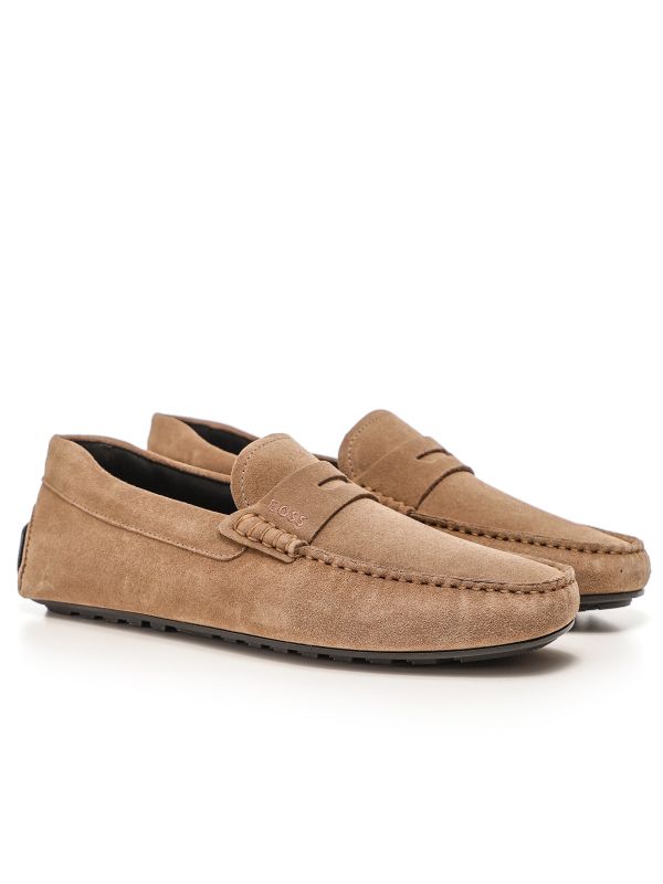 The BOSS Noel_Mocc_sd loafers are a requisite for smart summer style. Crafted in the finest suede, the slip-ons showcase a buttersoft feel. Featuring a classic moccasin cnstruction and penny strap, whilst the driving shoe tread sole ensures comfort with every step.