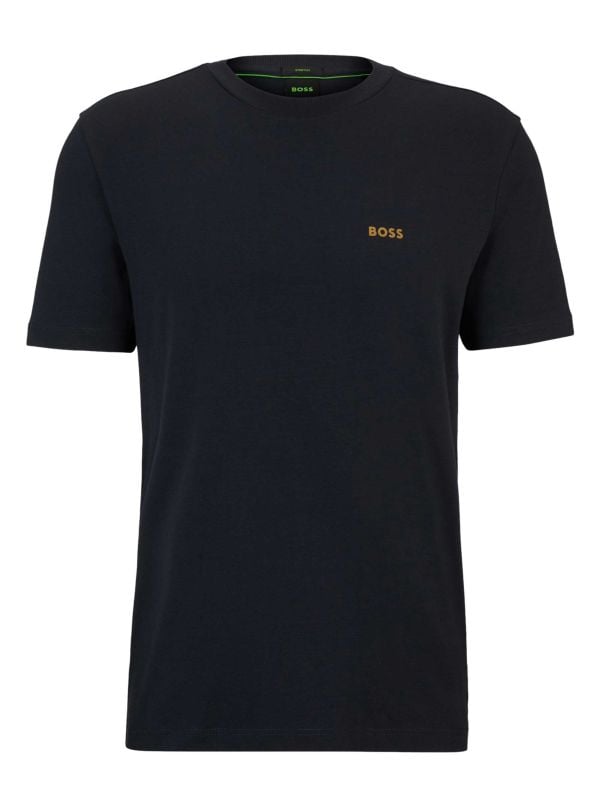 The BOSS Tee shirt is a stylish and versatile wardrobe staple, crafted from high-quality cotton with a touch of stretch for added comfort and ease of movement. Featuring a classic crew neck and short sleeves, this tee is designed for a regular fit, making it perfect for everyday wear.