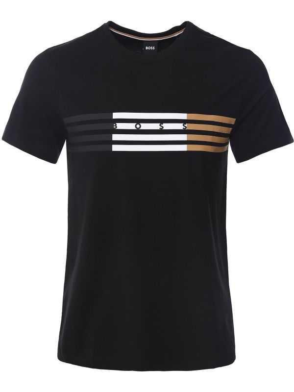 Add designer appeal into your weekend wardrobe with the BOSS Tiburt 332 t-shirt. Engineered in pure cotton, the tee will ensure comfort and a super soft handle. Featuring a classic ribbed crew neck and short sleeves, whilst the striped graphic lends a signature Hugo Boss finish.
