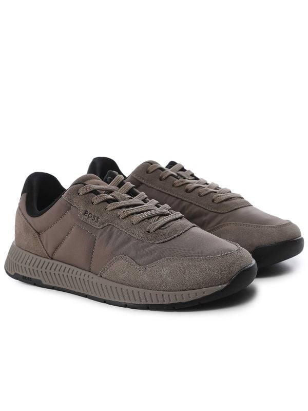 Boost your everyday performance with the BOSS Titanium_Runn_sdnypa Sneakers — crafted with lightweight polyester uppers and premium suede panels for a dynamic mix of comfort and style. The lace-up design, branded sides and tongue, and embroidered Signature Stripe heel tab deliver that bold BOSS identity customers love, while the ribbed outsoles provide grip and energy with every step. If you’re ready to upgrade to sport-inspired Hugo Boss Sneakers that look sharp and feel unbeatable, grab your pair today before they’re gone.