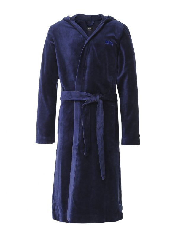 Indulge in comforting luxury at home with the BOSS hooded gown. Crafted in a cotton blend velour fabric, the Hugo Boss robe offers a truly sumptuously soft handle and relaxed fit, complete with side seam pockets, hood and waist tie, whilst the embroidered logo adds iconic detail.