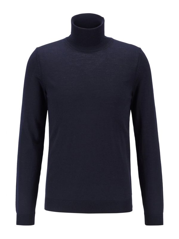 Inject sophisticated style into your knitwear collection with the BOSS Musso-P sweater. Beautifully crafted from luxurious virgin wool for a soft touch and elevated comfort, the charming sweater features a flattering roll neck, branded metal tab to the side and ribbed neck, cuffs and hem. Style yours with tailored pants for a smart on-duty ensemble.