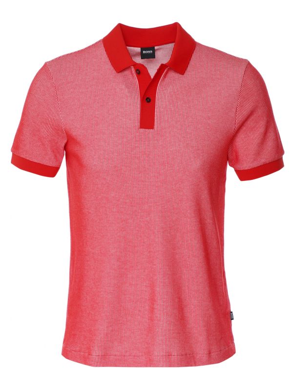 Lend your casual attire savvy depth of character with the BOSS Parlay 68 polo shirt. Expertly crafted in a cotton-rich fabric with stretch, the polo has been given a textured waffle finish lending superb softness and a tactile handle. Featuring a flat knit collar, placket and cuffs, two button placket and split side gussets, whilst the bright pop of colour makes the top ideal for summertime dressing.
