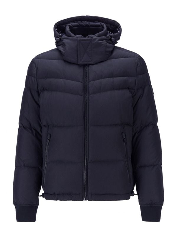 Gear up for cold weather dressing with the BOSS Olooh2 jacket. Expertly engineered in a lightweight, water-repellent ripstop taffeta, the jacket has been filled with responsibly sourced duck down for superb warmth and comfort. Featuring a zip-through fastening, removable hood and zippered hand pockets, whilst the ribbed cuffs and adjustable hem offer further protection against the elements.