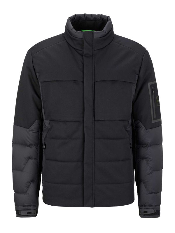 The BOSS J_Lisk jacket is a dynamic option ideal for winter layering. Cut to a regular fit and constructed in technical mixed materials, the jacket has been filled with responsibly sourced duck down and feather for optimum insulation. Water-repellent and lightweight, the Hugo Boss jacket features a stand collar, concealed zip fastening and Velcro cuffs, whilst the zippered hand pockets provide functionality.