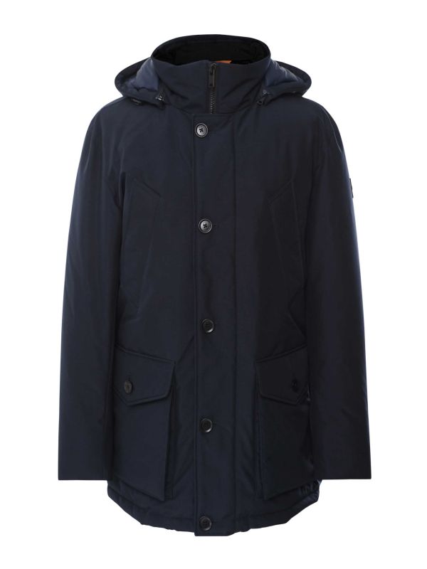 The BOSS Osiass parka is built for those who demand style and functionality in challenging conditions. Crafted from a durable, water-repellent micro-textured fabric, this parka shields against the elements while maintaining a refined look. The adjustable toggle hood provides added protection and can be customised for a snug fit. A combination of button and concealed zip closures offers a clean silhouette and effective weather resistance.
