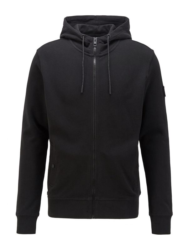 Lend your casual staples premium quality with the BOSS Zounds 1 hoodie. Expertly crafted in French terry cotton, the sweatshirt will ensure day-long comfort. Featuring a traditional drawstring hood, zip-through fastening and ribbed trims, whilst the press stud hand pockets add functionality. The Hugo Boss hoodie is complete with a silicone brand badge to the sleeve adding authentic urban detail.