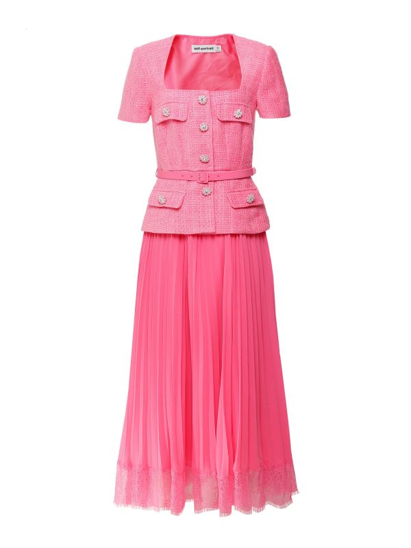 Boucle Chiffon Midi Dress