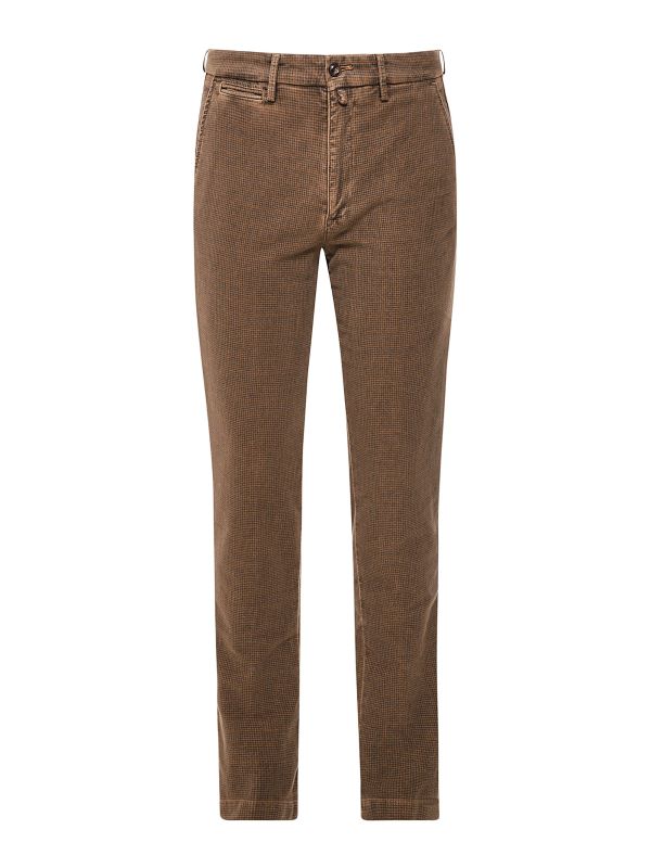 The Briglia 1949 houndstooth pants are a superior choice for the modern man. Lovingly tailored in Italy from a soft moleskin cotton, the pants have been cut to a slim fit with stretch for a flattering silhouette. Featuring a button and zip fastening, belt loops and classic five pocket design, whilst the charming houndstooth pattern lends heritage-led character.
