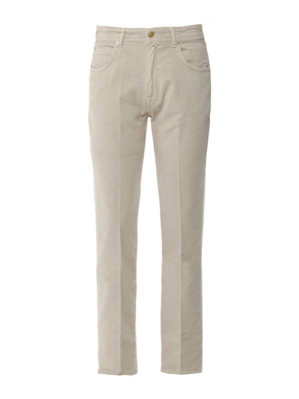 The Briglia 1949 Steve trousers are a stylish alternative to traditional denim. Tailored in Italy from a premium cotton with stretch, the pants showcase a super soft moleskin finish. Featuring a zip fly, belt loops and classic five pocket design, whilst the neutral colour options allow for versatile styling with separates.