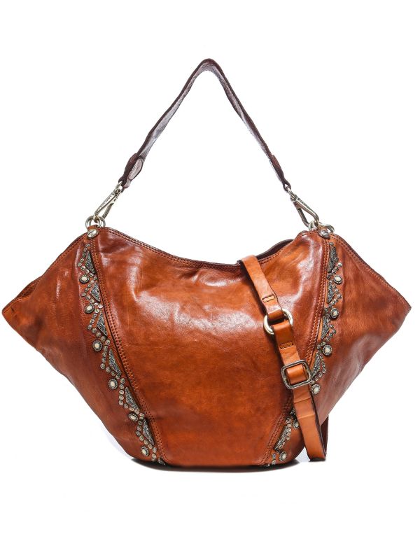Look no further than this beautiful Campomaggi shoulder bag for a handcrafted accessory that perfectly blends utility and vintage style. Lovingly crafted in Italy from genuine leather, this spacious bag has plenty of room for your everyday essentials and showcases distinctive design with its embellished details and slouchy silhouette. Featuring an interchangeable leather top handle and shoulder strap as well as interior pockets, this unique bag is a durable investment piece that will never go out of style.