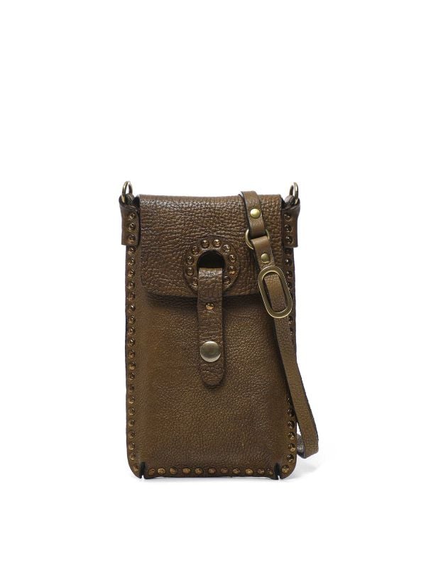 Made in Italy from 100% leather, the Campomaggi phone pouch is a compact style expertly designed for storing your phone. It has a press stud closure, an adjustable and removable strap and card slots on the back. The edges are decorated with gold-coloured studs, ideal for elevating your everyday outfits. With its compact size, this Campomaggi bag is the ideal choice when you only want to carry the essentials.