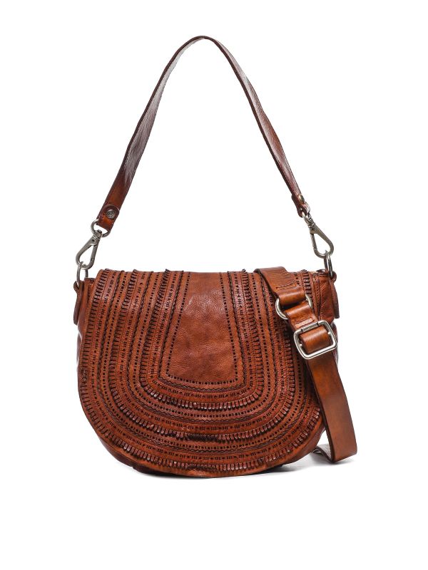 The Campomaggi shoulder bag is a saddle bag style with intricate details. Crafted from leather, this shoulder bag has a single removable handle, an adjustable and removable shoulder strap for convenience, and a handy zip pocket to the back for quick access to belongings. It has silver-toned hardware and all the signature Campomaggi details, like the studded label to the back.