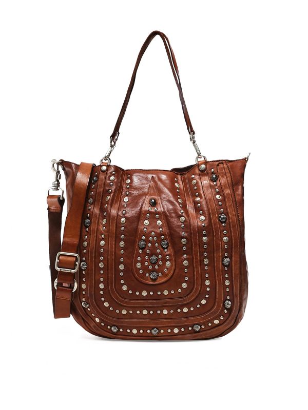 Stylish and versatile, the Campomaggi leather shopper bag is a must-have piece for your collection. This uniquely designed bag has been handcrafted in Italy and features studded embellishment to the front for a signature look, with top handles and a detachable shoulder strap allowing you to wear it in multiple ways. The bag offers ample space for your belongings and is complete with a snap button fastening and interior pockets.