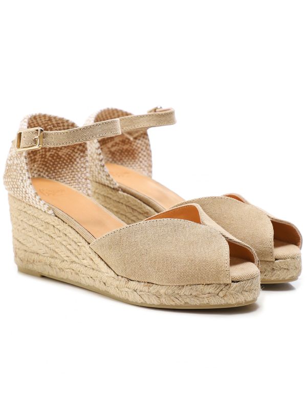 Elevate your summer wardrobe with the Castaner Bianca sandals. Expertly crafted from cotton canvas, the sandals are complete with a braided fabric heel. Featuring a peep-toe design and an espadrille wedge, the sandals offer functionality and ease with a buckle fastening to the ankle strap. Style yours with anything from jeans to midi dresses throughout SS22.
