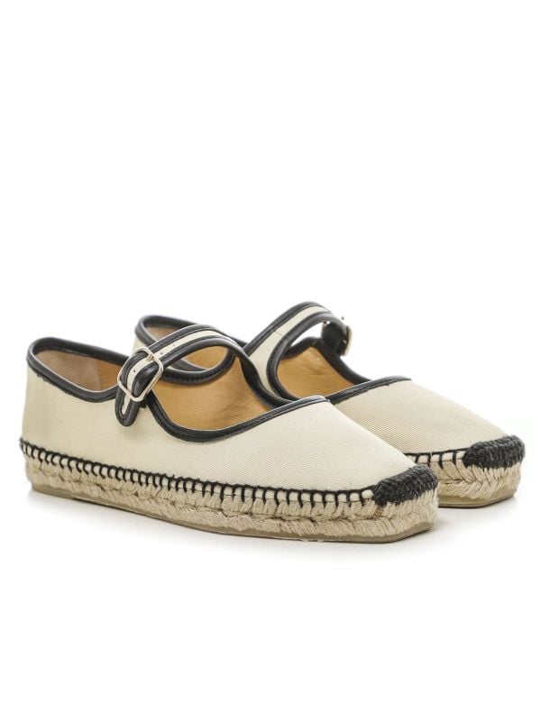 The Castañer Padua combines the classic Mary Jane style with the summery espadrille. These Castañer espadrilles are handmade in Spain from organic cotton with black sheepskin leather trims. They close with a buckle fastening and are set on a flat jute sole. Wear yours everywhere from the beach to summer parties.