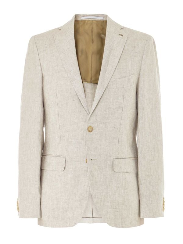 The Cavaliere linen jacket epitomises timeless sophistication and summer elegance. Crafted from premium linen fabric, this unconstructed single-breasted piece boasts a refined silhouette with a slim fit, perfect for warmer climates. Its two-button closure and notch lapels exude classic charm, while details like the chest welt pocket, lower flap pockets, and four-button cuffs add both functionality and style.