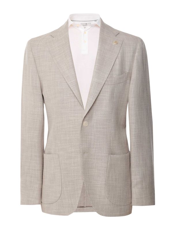 The Cavaliere Matthieu jacket is a premium choice for your summer events. Elegantly tailored to a slim fit, the jacket is crafted in natural linen offering a softness and essential cooling qualities. Featuring a notch lapel with two button fastening and buttoned cuffs, whilst the patterned lapel pin lends a charming touch.