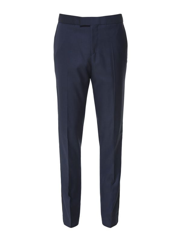 The Cavaliere Pascale pants are a premium choice for your evening attire. Elegantly tailored to a slim fit, the tuxedo pants are crafted in an Italian-made Super 110's wool offering an exceptional feel and drape. Featuring two side pockets, zip fly and adjustable waist buttons, whilst the contrast silk side trims add a luxurious finish.