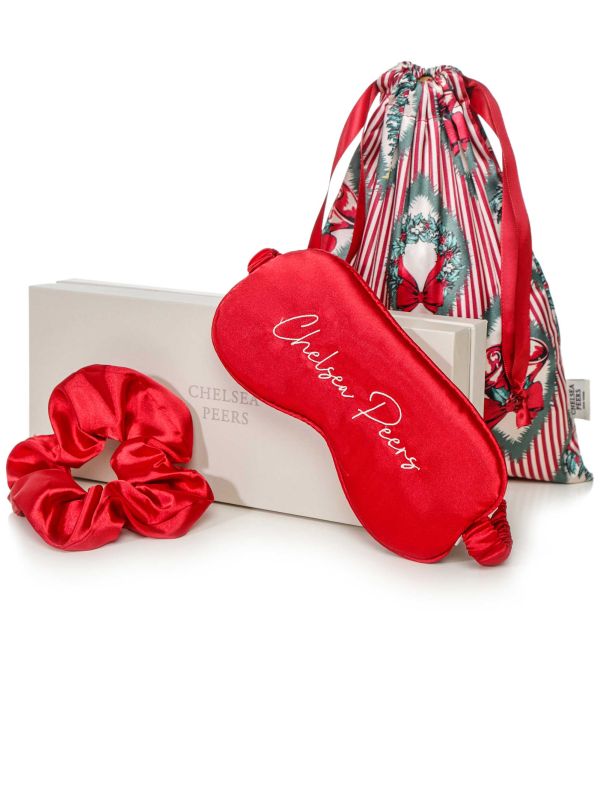 Chelsea Peers Satin Christmas Vintage Tree & Wreath Sleep Mask & Scrunchie Gift Set
