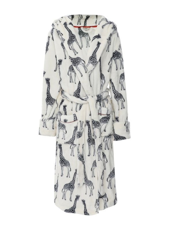 Enjoy the comfort of home with the Chelsea Peers Fleece Giraffe Dressing Gown. This plush Chelsea Peers dressing gown is crafted from cosy fleece fabric made from recycled fibres. It comes with a deep hood, self-tie belt, patch pockets with contrast piping and a hand-drawn giraffe print. Soft and silky to the touch, this robe is the perfect piece for wrapping up this season.