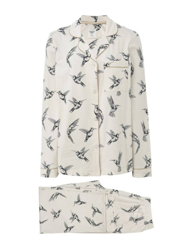 Elevate your loungewear collection with the Chelsea Peers hummingbird long pyjama set, a delightful ensemble that combines comfort and style. Crafted from organic cotton with a hint of stretch, this matching set features a charming hummingbird pattern that adds a playful touch to your bedtime routine.