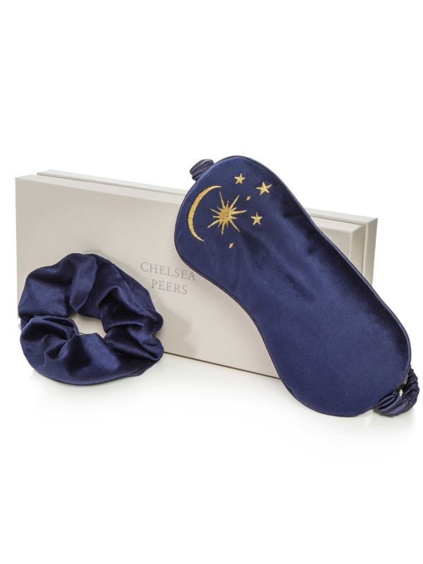 Chelsea Peers Satin Embroidered Moon & Stars Sleep Mask & Scrunchie Gift Set