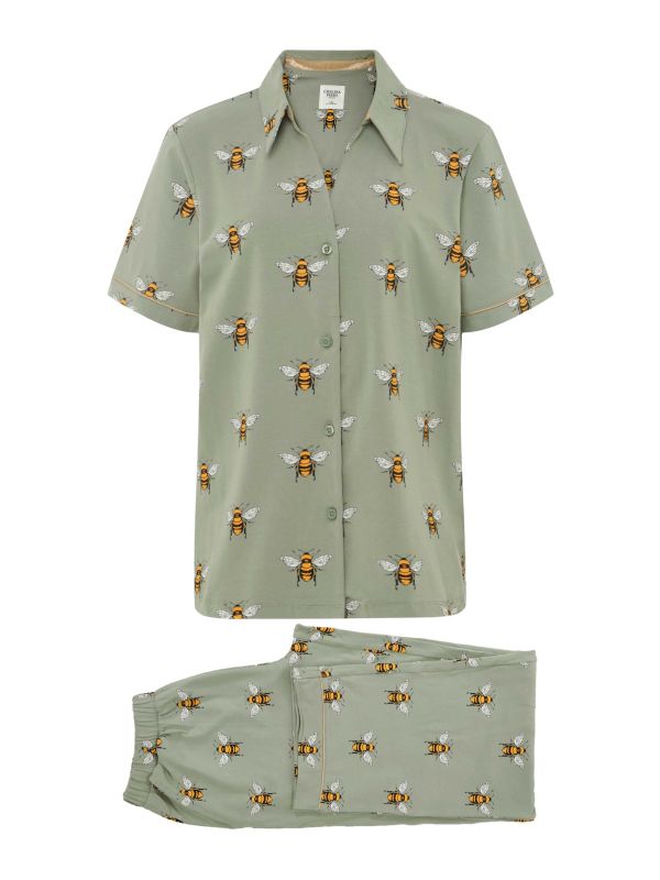 Relax in style with the Bee Print Long Pyjamas by Chelsea Peers. Featuring a button-up shirt with an open collar and short sleeves, and straight trousers with an elasticated waistband. Crafted from organic cotton, these Chelsea Peers pyjamas are soft and comforting while the bumble bee print brings cheer to your sleepwear collection.