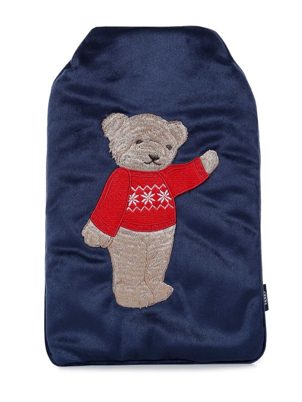 The Peers The Bear Hot Water Bottle by Chelsea Peers brings comforting warmth with a hand-stitched teddy motif. Designed to accept a standard hot water bottle, this cover is supplied with a rubber bottle for instant use. Soft to the touch and finished with piped edges, it has a woven side tab and sits neatly in the compact presentation box shown. Ideal as a thoughtful gift or bedside accessory, the cover offers practical warmth and charming detailing for cosy evenings at home.