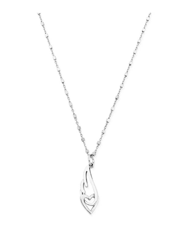 Strung on a delicate chain with mini cube-shaped beads, the ChloBo Heart & Angel Wing Necklace is a versatile piece that can be worn on special occasions or as part of your daily look. Carefully crafted using 925 sterling silver, this ChloBo necklace stands out with its pretty charm featuring an interlocked angel wing and heart.