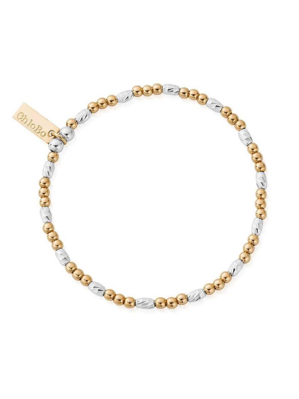 Perfect for pairing with your charm bracelets, the Dainty Sparkle Bracelet by ChloBo is an essential layering piece. Featuring a mixed metal design, this ChloBo bracelet is a slip-on style with a petite string of 18ct gold-plated and 925 sterling silver beads. Enjoy the sparkle as the light catches this piece effortlessly.