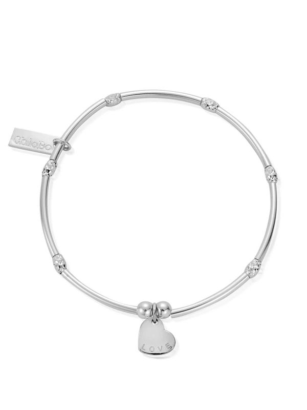 Simple, elegant and effortless to style, the ChloBo Mini Noodle Sparkle Rice Love Disc Bracelet is ideal for elevating your everyday look. Showcasing a heart-shaped charm engraved with the word "love" and shiny beads that sparkle in the light, this ChloBo bracelet is a must-have for the summer season.