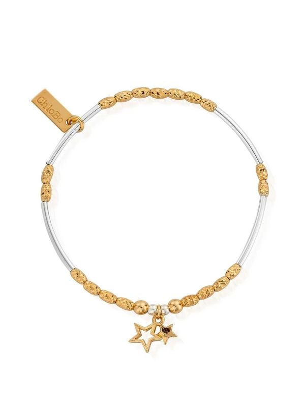 Elevate any outfit with ChloBo's Double Star Bracelet in mixed metal, combining sterling silver and gold-plated beads for a signature look. This ChloBo bracelet slips on and showcases shiny textured gold beads and two star charms, finished with a branded rectangular tag.